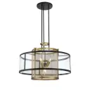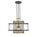 4 Light Pendant in Coal and Soft Brass Finish with Soft Brass Wire Mesh and Clear Glass, a Robin Baron Design