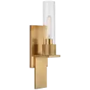 The Beza Small Bath Sconce combines classic styling with contemporary sensibility. Its antique brass finish and clear glass shade create warm, inviting illumination perfect for bathrooms and intimate spaces.