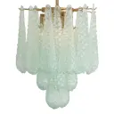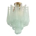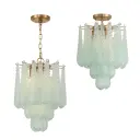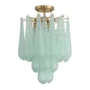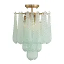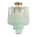 The Ollie semi flush mount combines vintage charm with modern sophistication through hand-blown glass featuring intricate raised details. Its dynamic color-shifting effect and aged brass finish create an artistic statement piece.