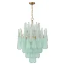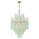 The Ollie chandelier combines vintage charm with modern sophistication through hand-blown blush glass featuring intricate raised details. Its dynamic color-shifting effect creates visual interest whether lit or unlit, making it a true focal point.