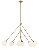 The Omni Linear Chandelier combines mid-century aesthetics with modern functionality. Six suspended lights with opal glass shades create a sculptural statement piece perfect for dining rooms and living spaces.