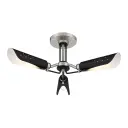 The Turbine semi-flush mount combines brushed nickel with coal highlights for an industrial-modern aesthetic. Its compact 22-inch profile and low 7.5-inch height make it ideal for rooms with standard or lower ceilings.