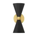 The Conic wall sconce combines modern sophistication with industrial edge, featuring a warm honey gold finish and distinctive coal metal cone shades. Compact at 13" tall, it delivers focused task lighting perfect for flanking mirrors or illuminating hallways.