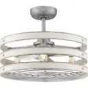 The Gulliver 23" ceiling fan combines modern industrial styling with practical functionality. Its compact 3-blade design and galvanized finish make it ideal for smaller rooms, covered patios, and coastal environments.