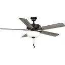 The AirPro combines efficient AC motor performance with integrated lighting in a sleek matte black finish. Its 52-inch blade span makes it ideal for medium to large rooms, while the transitional design complements various décor styles.