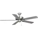 The AirPro ceiling fan combines transitional styling with reliable AC motor performance. Its 52-inch blade span and brushed nickel finish make it suitable for medium to large rooms, offering efficient air circulation.