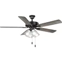 The AirPro combines efficient AC motor performance with integrated lighting in a sleek matte black finish. Its 52-inch blade span makes it ideal for medium-sized rooms, while the transitional design complements various décor styles.