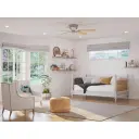 The AirPro 52" hugger fan combines efficient airflow with a space-saving flush mount design, ideal for rooms with lower ceilings. Its brushed nickel finish and five-blade configuration deliver reliable performance in a transitional style.
