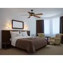 The Harranvale combines contemporary styling with practical functionality, featuring a 54-inch blade span ideal for medium to large rooms. Its graphite finish and integrated LED light provide both efficient cooling and illumination.