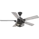 The Greer Collection ceiling fan combines transitional styling with practical functionality. Its 54-inch blade span and gilded iron finish make it ideal for larger living spaces, bedrooms, and family rooms.