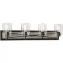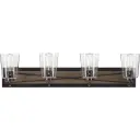 The Briarwood four-light vanity brings rustic elegance to larger bathrooms with its clear glass shades and antique bronze finish. JA8-compliant for California installations, it delivers ample illumination while adding coastal-farmhouse character.