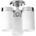 The Elevate Collection brings sophisticated mid-century style to spaces with limited ceiling height. Its polished chrome finish and compact 11.75-inch profile deliver modern elegance without sacrificing brightness.