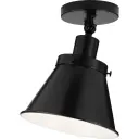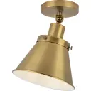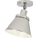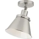 The Hinton ceiling light blends farmhouse charm with transitional elegance, featuring polished nickel finish and clear glass. Perfect for spaces with lower ceilings, this compact fixture delivers style without sacrificing headroom.