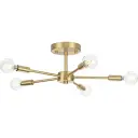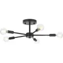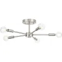 The Delayne five-light semi-flush mount combines mid-century modern aesthetics with contemporary functionality. Its brushed nickel finish and clean lines make it versatile for various residential spaces.