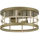 The Lattimore flush mount combines aged brass warmth with clean transitional lines, perfect for low-ceiling spaces. Its 13-inch profile delivers style without overwhelming smaller rooms.