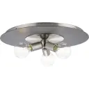 The Trimble Collection brings sophisticated mid-century styling to low-ceiling spaces. Its 18-inch diameter and three-light configuration provide ample illumination while the brushed nickel finish adds refined elegance.