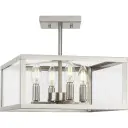 The Hillcrest semi-flush mount combines transitional elegance with modern farmhouse charm. Its compact 13-inch profile and brushed nickel finish make it ideal for smaller spaces with standard ceiling heights.