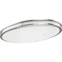 The Abide Collection offers a sleek 32-inch flush mount with 5-CCT technology, allowing you to customize lighting from warm to cool white. Perfect for large spaces with low ceilings, this JA8-compliant LED fixture combines energy efficiency with contemporary style.