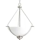 The Bravo three-light inverted pendant combines contemporary styling with practical illumination. Its brushed nickel finish and inverted bowl design provide ambient lighting perfect for dining and kitchen spaces.