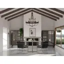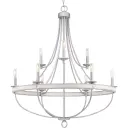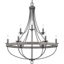 The Gulliver nine-light chandelier combines rustic farmhouse charm with coastal influences through its galvanized metal finish. Perfect for large dining rooms and foyers, this fixture delivers substantial illumination while making a bold design statement.
