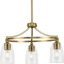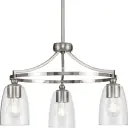 The Parkhurst chandelier blends farmhouse warmth with modern simplicity through its three-light design and clear glass shades. The brushed nickel finish adds contemporary polish while maintaining transitional appeal.