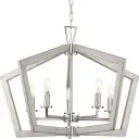 The Galloway five-light pendant combines modern farmhouse style with coastal influences, featuring a brushed nickel finish that complements various interiors. At 19.25 inches, it's perfectly sized for medium dining spaces and kitchen islands.