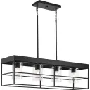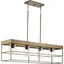 The Burgess Island Light blends modern clean lines with rustic farmhouse warmth through its aged bronze finish. Four lights provide ample illumination for kitchen islands and dining tables while the linear design creates visual balance.
