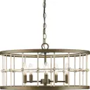 The Lattimore five-light chandelier blends transitional design with coastal and rustic influences, featuring an aged brass finish that adds warmth to any space. Perfect for dining rooms and kitchens.