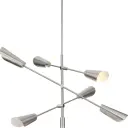 The Cornett chandelier brings contemporary sophistication to dining and kitchen spaces with its six-light configuration and brushed nickel finish. Its modern design complements both residential and light commercial settings.