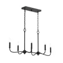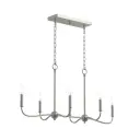The Ilia six-light chandelier combines clean lines with transitional styling in a brushed nickel finish. Perfect for kitchen islands and dining spaces, it offers balanced illumination with contemporary sophistication.