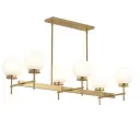 The Rigsby six-light chandelier brings soft modern elegance to dining and kitchen spaces. Its linear design and brushed gold finish create a sophisticated focal point perfect for contemporary and transitional interiors.