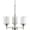 The Alexa chandelier combines contemporary styling with versatile appeal. Three lights with clear edge glass shades provide ample illumination while the brushed nickel finish adds refined elegance to any space.