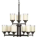 The Alexa Collection chandelier delivers dramatic modern elegance with nine lights that provide exceptional illumination. Its brushed nickel finish offers versatile sophistication for both residential and commercial spaces.