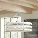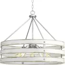The Gulliver pendant brings coastal charm with its galvanized metal finish and five-light configuration. Perfect for kitchen islands and dining spaces, this fixture combines rustic appeal with functional illumination.