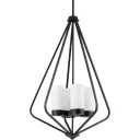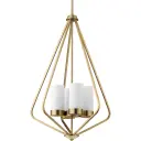 The Elevate pendant combines polished chrome hardware with etched white glass shades for a refined, versatile look. Four lights provide ample illumination for dining and kitchen spaces while the contemporary design complements both modern and transitional interiors.