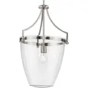 The Parkhurst pendant blends farmhouse warmth with modern simplicity through its clear glass shade and brushed nickel finish. Perfect for kitchen islands or dining areas, this single-light fixture offers timeless appeal.