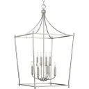 The Parkhurst chandelier combines farmhouse charm with modern sophistication in a brushed nickel finish. Eight lights provide ample illumination for large foyers, dining rooms, and entryways while maintaining an elegant transitional aesthetic.