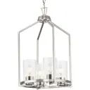 The Goodwin four-light pendant combines modern farmhouse charm with transitional elegance. Its brushed nickel finish and clean lines make it adaptable to various interior styles while providing ample illumination.