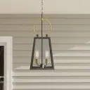 The Barnett Hanging Lantern brings vintage-inspired elegance to porches and patios with its antique bronze finish and clear glass panels. Perfect for coastal and farmhouse aesthetics, this transitional fixture adds welcoming ambiance.