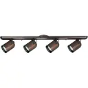 This multi-directional fixture offers flexible lighting control with four adjustable heads in a sleek brushed nickel finish. Perfect for task lighting or accent illumination in modern spaces.