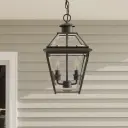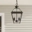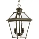 The Burlington hanging lantern brings traditional elegance to outdoor spaces with its antique bronze finish and clear glass panels. Perfect for porches and patios, this two-light fixture combines classic design with modern JA8 compliance.