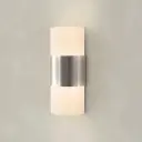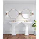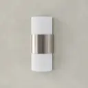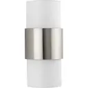The Silva wall sconce combines brushed nickel hardware with white linen shades for a refined, versatile look. Its two-light design provides balanced illumination perfect for bathrooms, hallways, and bedrooms.
