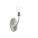 The Jheni Wall Sconce blends transitional elegance with modern simplicity in a brushed nickel finish. Its compact design makes it ideal for bathrooms, bedrooms, and hallways where refined lighting is needed.