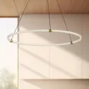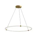 The Bruni 40-inch pendant combines modern geometric design with practical functionality. Its adjustable circular rings offer customizable styling while integrated LED technology provides warm, sufficient lighting for large spaces.