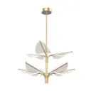 The Flora 8 Head Pendant combines organic floral inspiration with Art Deco sophistication. Edge-lit glass leaves create a dramatic visual effect around a Natural Brass frame, perfect for making a bold statement in dining rooms and living spaces.