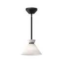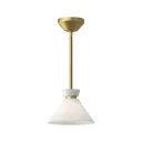 The Halston 8-inch pendant beautifully captures 1950s couture elegance with its glossy opal glass shade and brushed gold metallic accents. Perfect for adding refined ambiance to intimate spaces without overwhelming the room.