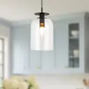 Elegant Modern Pendant with Feminine Curves and Clear Glass Dome