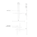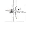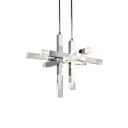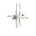 The Martelo pendant makes a bold statement with its geometric design featuring six polished chrome bars with quartz-like acrylic ends arranged perpendicularly. Integrated LED lighting illuminates from each bar end, creating dramatic visual interest perfect for contemporary spaces.