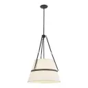 The Oliver pendant combines a soft white linen shade with bold matte black metallic framing to create warm, welcoming ambiance. Its 18-inch size and classic styling make it versatile for multiple rooms while adding sophisticated charm.
