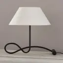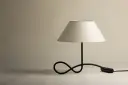 The Alameda Table Lamp combines forged iron craftsmanship with a lightweight paper shade for a sophisticated, sculptural presence. Its flowing form and material contrast make it perfect for modern interiors.